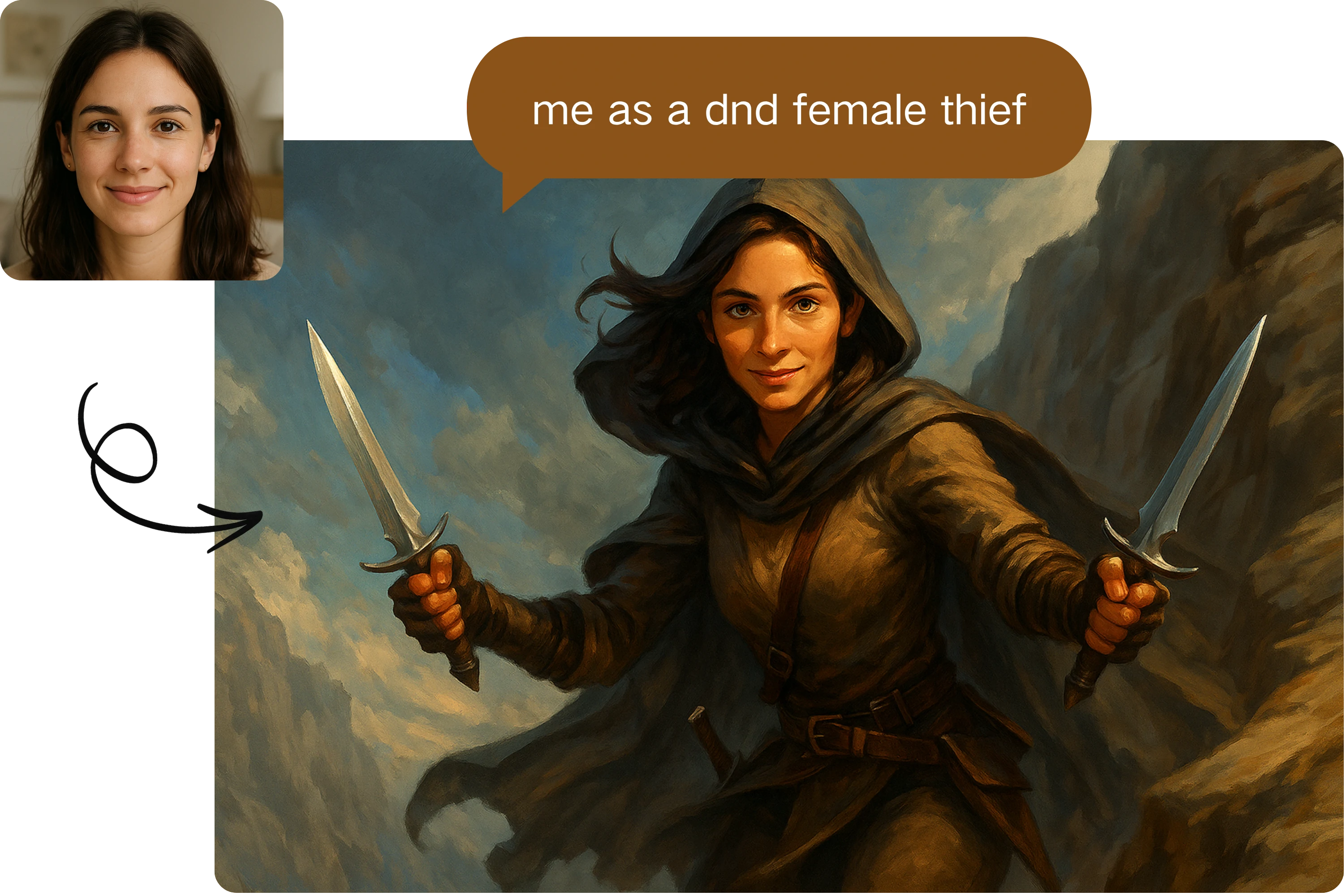 Transform your photos or descriptions into unique Dungeons & Dragons characters. Whether you’re a player or DM, generate detailed avatars for your campaign, complete with fantasy races, classes, and gear—perfect for bringing your tabletop adventures to life.